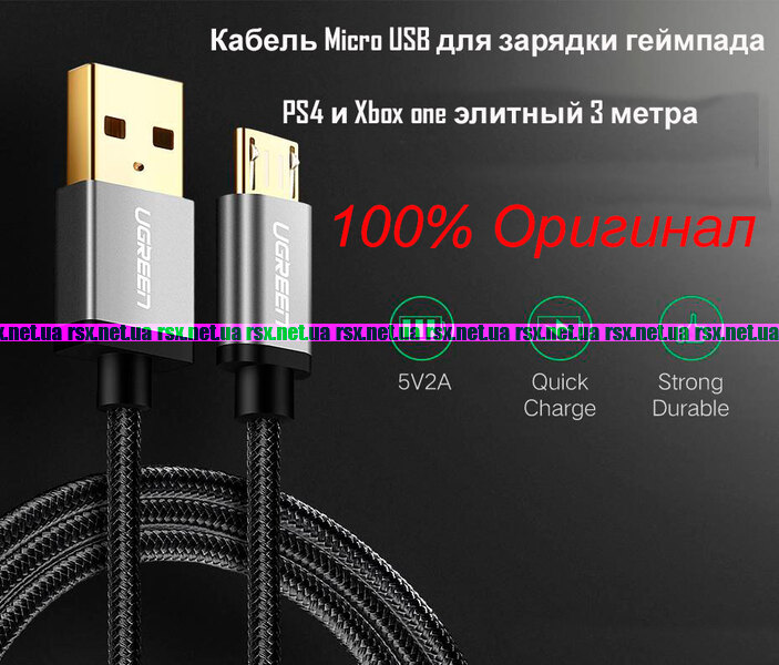 Кабель Micro USB для зарядки джойстика Xbox one 3 метра (Ugreen)(Оригинал)