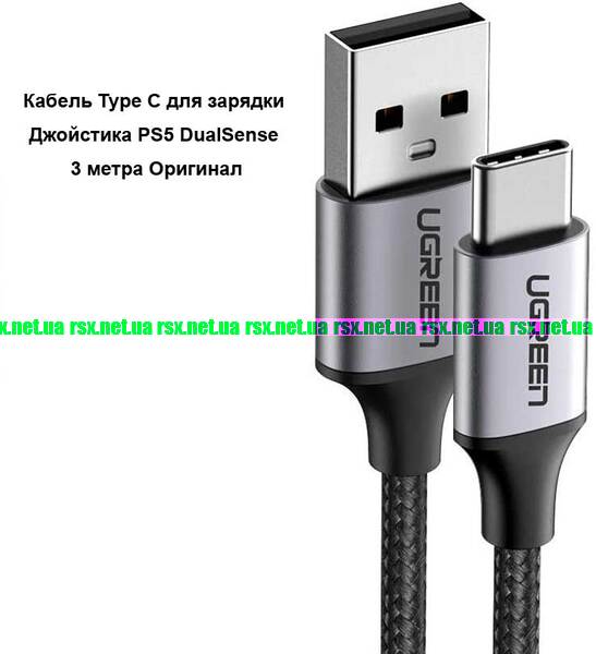 Кабель Type C для зарядки Джойстика PS5 DualSense (3 метра) (Ugreen) Оригинал