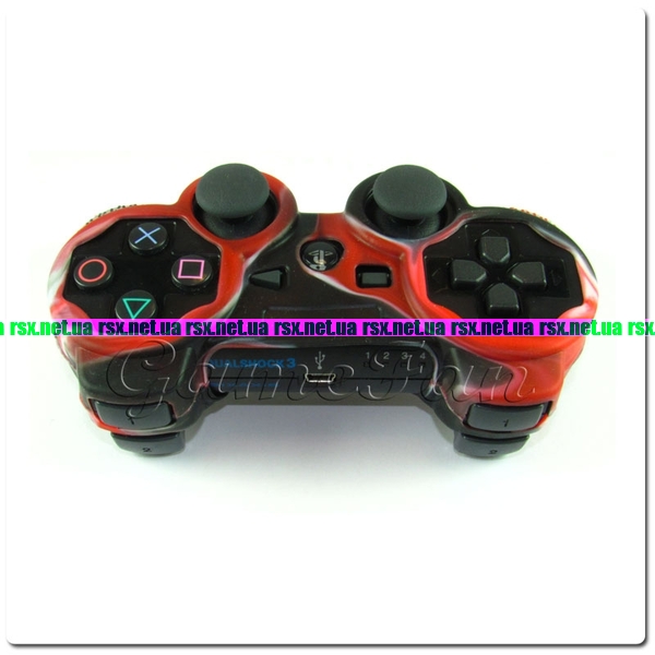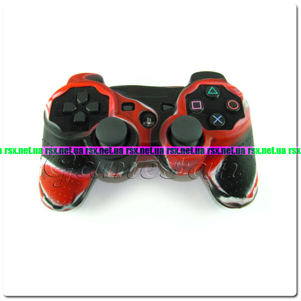 PS3 силиконовый чехол для джойстика (Камуфляж)(Red-black).