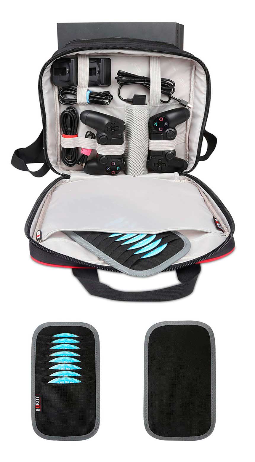 • Переднее отделение вмещает 2 DualShock 4, PlayStation камеру и все кабели